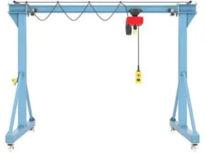 A light-duty gantry crane is a lifting equipment that resembles a gantry and can move in all directions. The main beam of the light-duty gantry crane is made of I-beams and other profiles, which not only bear weight but also serve as the lateral track for the hoist. The gantry crane is equipped with universal load-bearing wheels under its legs, which can move in all directions on a flat ground. The main beam and support legs of the gantry are connected by flange plates and high-strength bolts, which can be quickly disassembled and installed. They can be transferred to another site for installation and use with a small car. Heavy objects ranging from 1 to 10 tons can be lifted using electric or manual hoists. It can reduce manpower, achieve mechanization of lifting, lower production and operation costs, and improve work efficiency. Especially suitable for mold manufacturing enterprises, mines, auto repair factories, construction sites, logistics companies, mechanical processing manufacturing enterprises, warehouses and other occasions that require lifting.